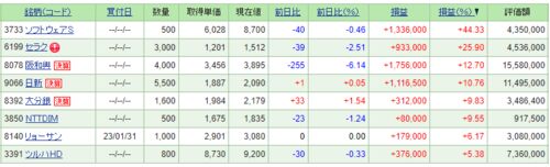 現物 信用 資産 71,825,273 (年初来+2.5%) TOPIX 1,986.96 全期間 今年 エクスポージャー:238% TOPIXは0.8%上昇に対して、入金・配当金抜き資産は0.8%上昇。 TOPIX比で、今年6週のうち3勝2敗1分 先週時点のPF上位12銘柄は リョーサン 5.1%UP 日新 2.3%DOWN…