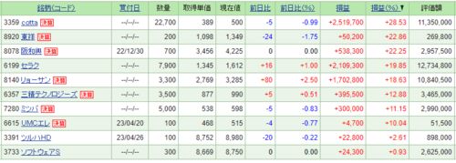 現物 信用 資産 71,605,735 (年初来2.1%) TOPIX 2,075.53 (年初来9.7%) 全期間 今年 エクスポージャー:280% TOPIXは0.9%上昇に対して、入金・配当金抜き資産は3.1%上昇。 TOPIX比で、今年18週のうち10勝6敗2分 先週時点のPF上位17銘柄は cotta 0.2%UP リ…